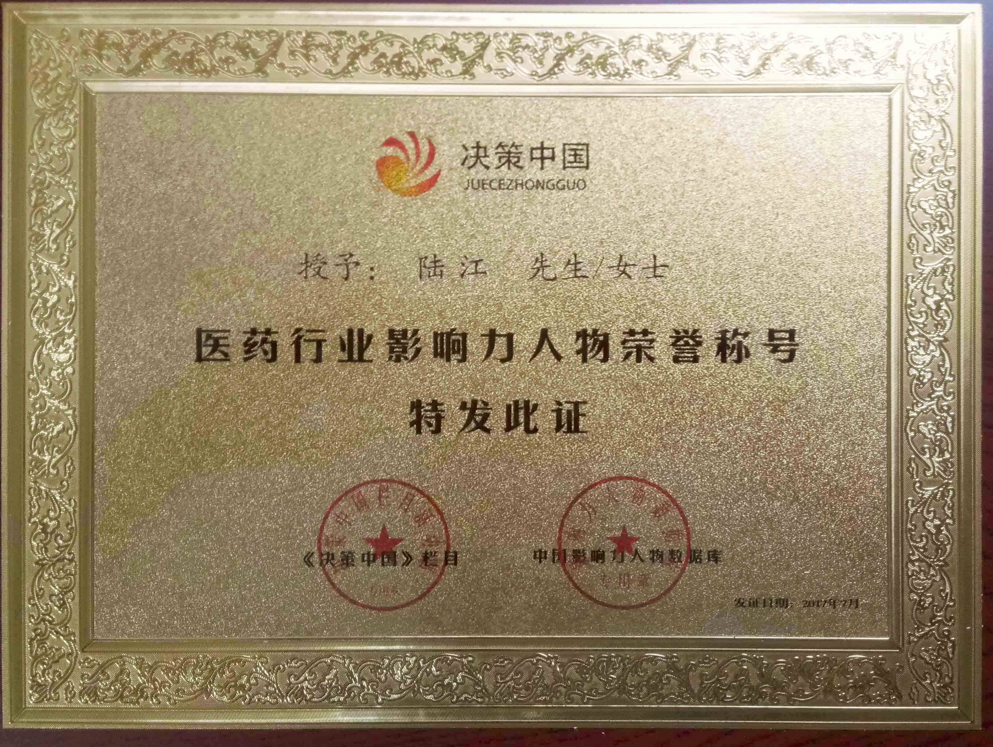 陸江榮獲引領(lǐng)行業(yè)發(fā)展杰出貢獻(xiàn)人物證書 --------卓康公司榮獲全國質(zhì)量、服務(wù)、信譽(yù)AAA級品牌證書