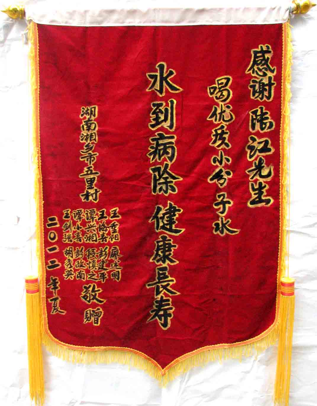 2015年潘志山主動寫一篇感想《我以親身實踐打破了冠心病、高血壓、糖尿病需終生服藥的神話》說:“堅持按發(fā)明人陸?江先生倡導(dǎo)的用‘已饑方食’的方法合理膳食,我的健康狀況越來越好:糖尿病造成的視力下降有了明顯的恢復(fù),末梢神經(jīng)炎導(dǎo)致的指端潰爛現(xiàn)在完全痊愈,痔瘡自從飲用微小分子團(tuán)水半年后就再也沒有復(fù)發(fā)過,氣滯血瘀造成的嘴唇暗紫也漸漸變得紅潤,舌下靜脈黑紫消失,足背的動脈由以前的隱約感到跳動現(xiàn)在變得清晰有力。”[13]潘先生披露的訣竅,一是飲用微小分子團(tuán)水給脫水細(xì)胞補(bǔ)水,二是“已饑方食”養(yǎng)生智慧,患者都能做到。